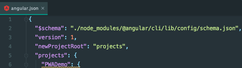 - PWADemo/angular.json: This file was updated to include the webmanifest and service worker that were generated.
