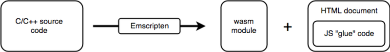 WebAssembly also cannot access the DOM directly. To change the DOM it needs to make a call out to Javascript, which then calls the Web APIs on WebAssembly’s behalf. Emscripten creates the HTML and JavaScript glue code needed to achieve this when using C++. Emscripten not only handles these calls, but it also implements popular libraries like SDL, OpenGL, OpenAL and parts of POSIX.